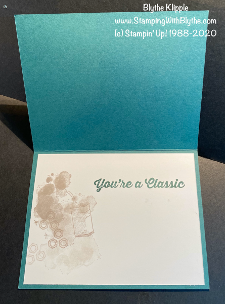 I must admit that this card was pulled out of the many cards I’ve had stockpiled (do you ever do that!?) waiting for that perfect moment, event and person. Well, in the meantime, the 6″ x 6″ Designer Series Paper (DSP) has been retired. I’m willing to share pieces of this DSP with you if ask. Just send me an email. blythe@stampingwithblythe.com Mind you, I have most, but not all, patterned pieces.