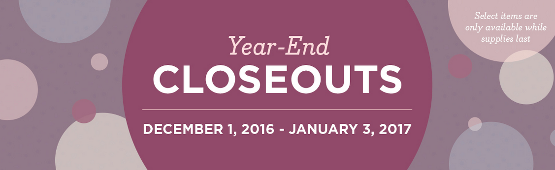 Stampin’ Up! has been doing a little year-end cleaning (I should be doing the same!!), and they’ve got some great deals to offer us! These Year-End Closeouts will include holiday retiring products, clearance rack items, and current high-inventory catalog products.