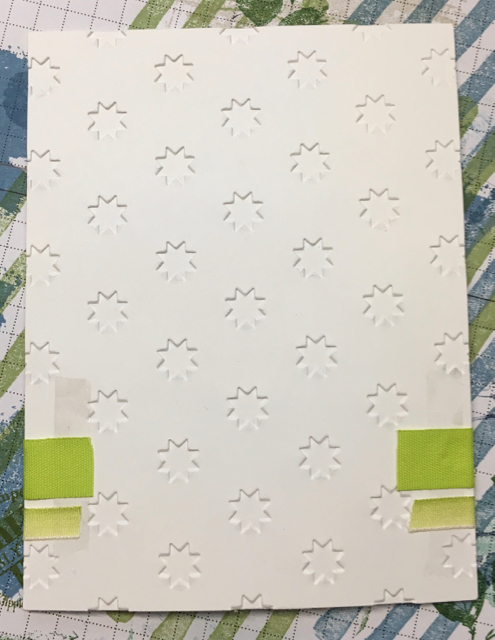 First the Big Shot and the Oh My Stars embossing folder. Then the ribbon attached on the back with Fast Fuse. Then attaching the layers. Then stamping and punching 3 balloons and attaching them with dimensionals. Almost finally, stamping the Happy Birthday Greeting, punching it out, sponging it and attaching it to the card front with dimensionals. And finally…..drawing in the balloon strings with the marker.