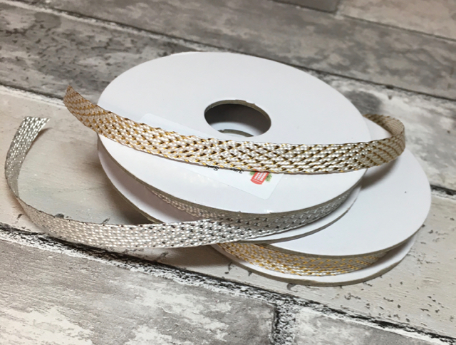 The ribbon is from Sale-a-Bration: 3/8″ Metallic Ribbon Combo Pack. You can earn this duo pack by placing a $50 order (before tax/shipping of course) from any Stampin’ Up! Catalog.