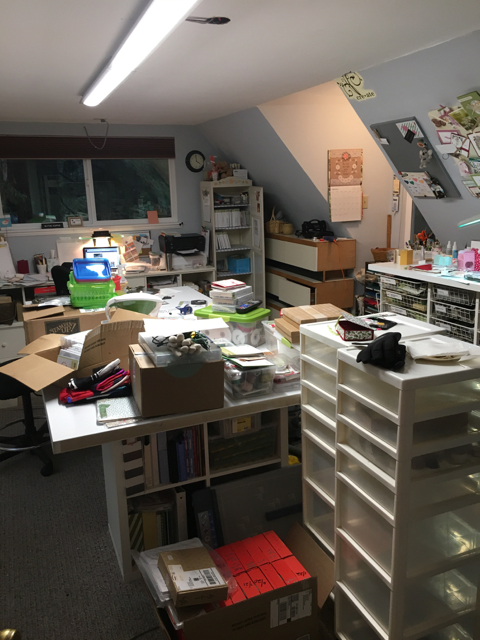 Here’s the current ‘reality’ in my stampin’ studio. Tomorrow will show a lot of progress!