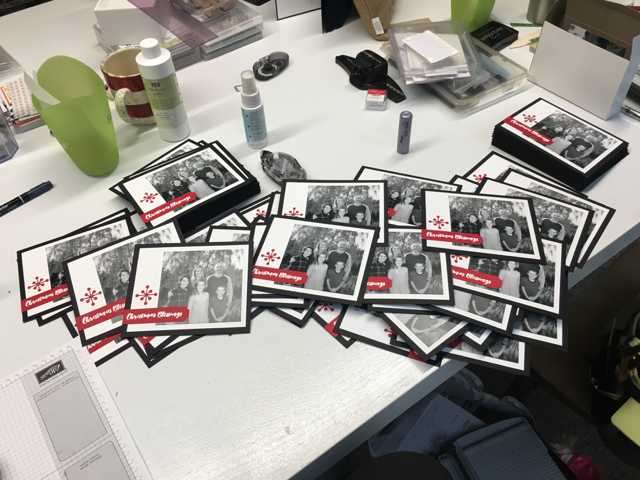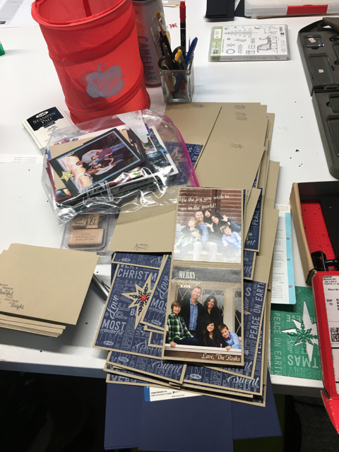 For about the last ten years my daughter and a few of her friends have driven up to our mountain home for a weekend away from husbands and children. It’s a time to make their annual Christmas cards. Hundreds of them. One made 85 cards, another made 100 and the third made about 125–without her family’s Christmas photo yet!
