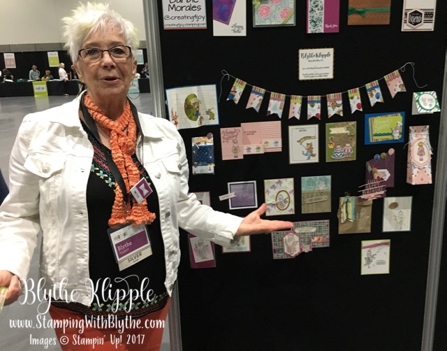 I got a jump start with Stampin’ Up!’s new Birthday Delivery stamp set and Birthday Memories Designer Series Paper in April. It was with great excitement that I accepted the invitation to be a display board stamper for Stampin’ Up!’s OnStage San Diego mini convention on April 8th.