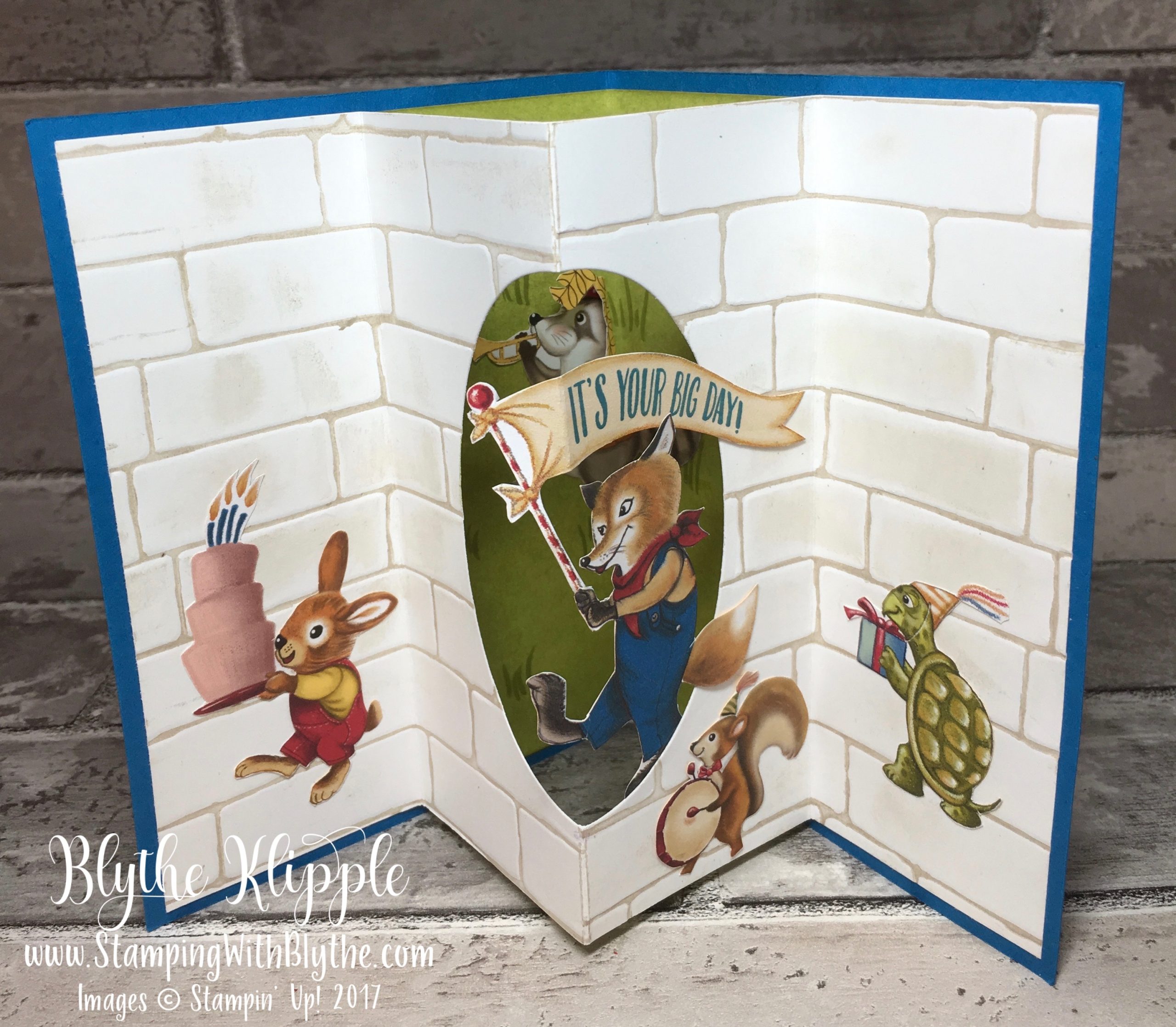 Again, all creatures are fussy cut with the my Paper Snips and attached with small bit of Multipurpose Liquid Glue. Before running the Brick Wall Textured Impressions Embossing Folder through the Big Shot with Crumb Cake classic ink, I smeared bits of it on the side where the ‘mortar’ pokes out, oozing out from the front of the bricks.