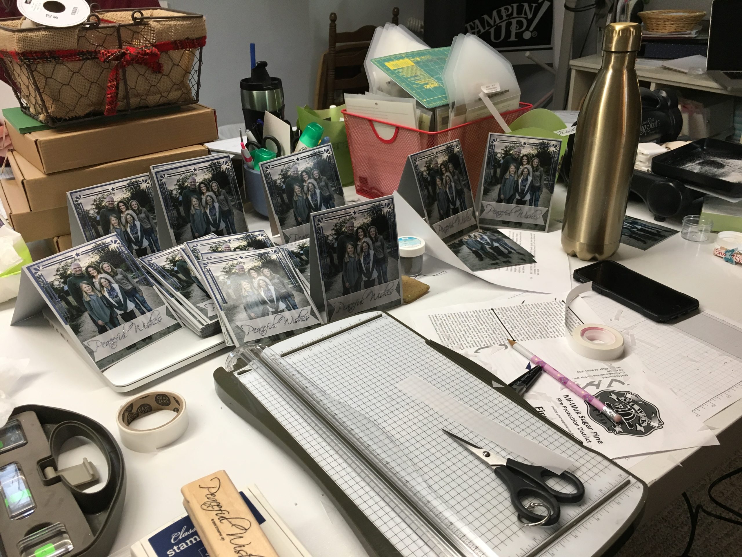 The first weekend in December is always highlighted with card making machines coming to my mountain home.  These are human card making machines.  By the time they all leave on Sunday somewhere between 350-450 holiday cards have been made.