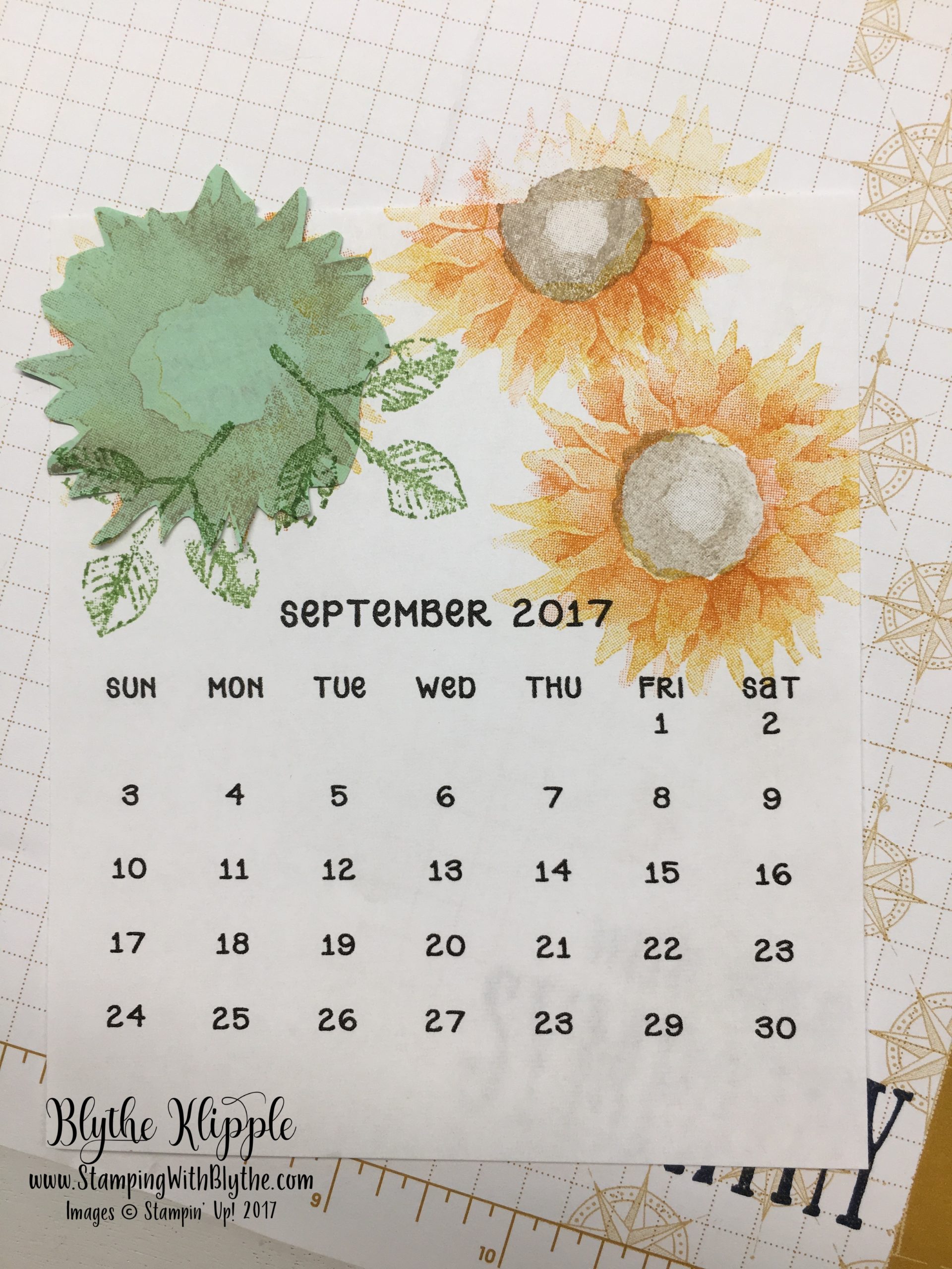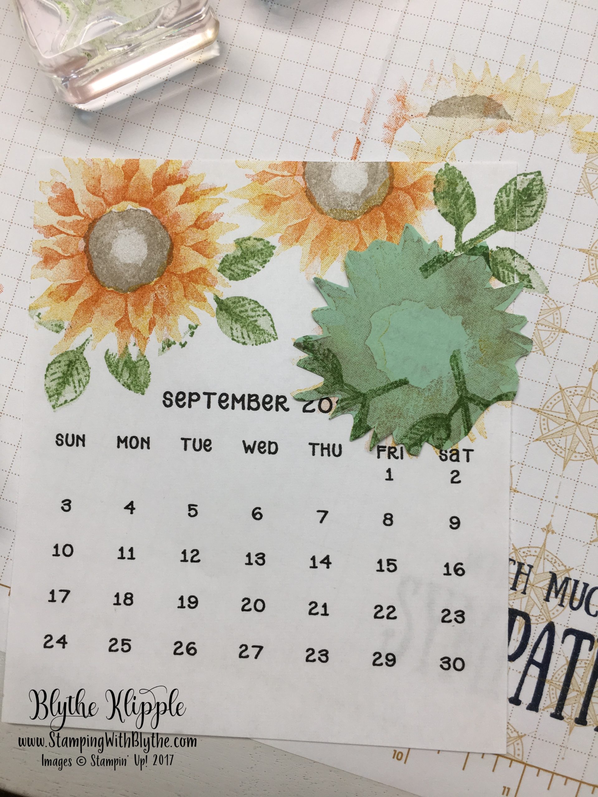 Then choose your stamp set.  For this September 2017 page I chose the new Painted Harvest stamp set with beautiful autumn sunflowers in my mind.