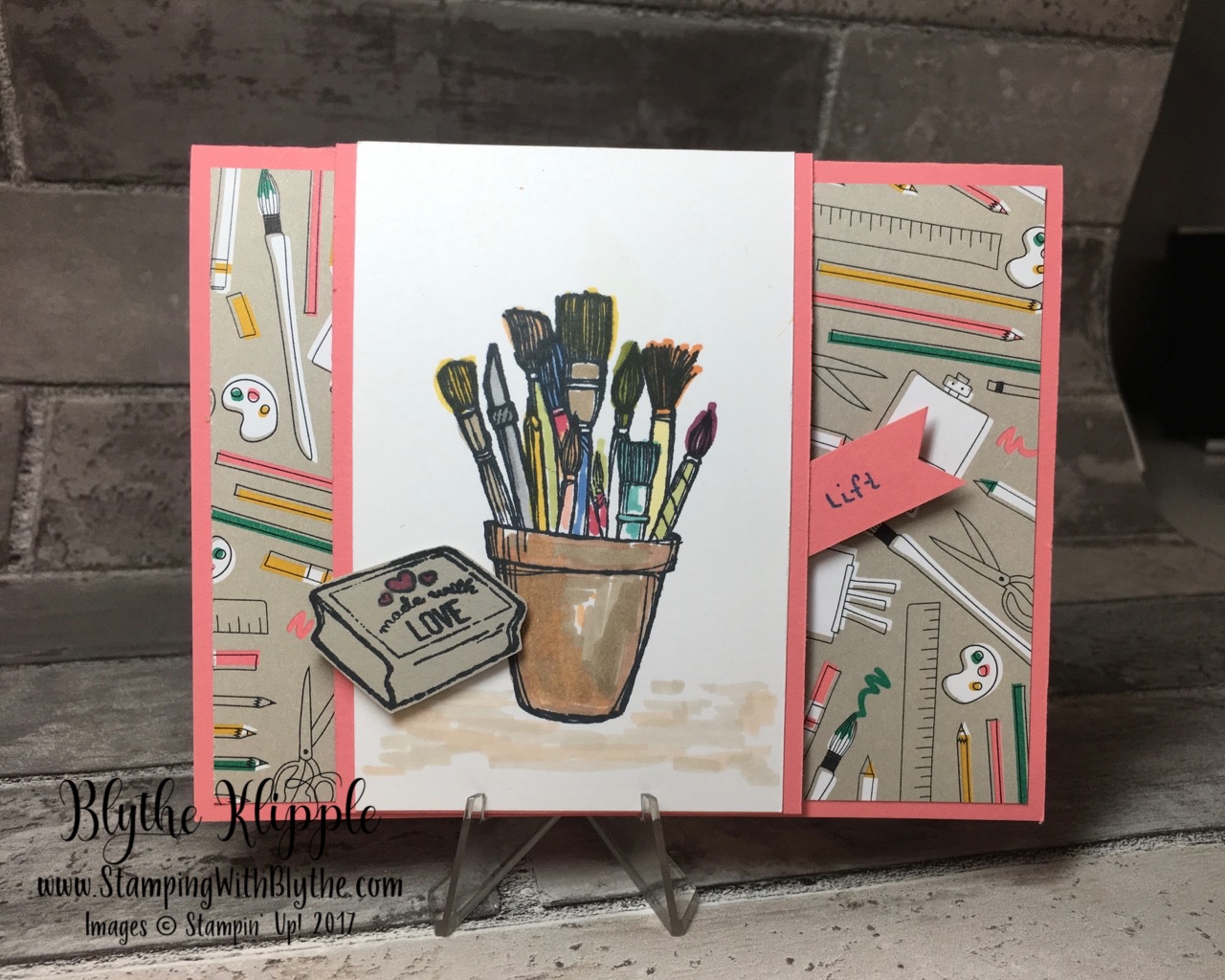 I’m not sure what to call this call except maybe a flip card? Flip the flap, or lift the flap and you’ll have a little greeting inside. Then you can open the entire card to see the rest of the message.