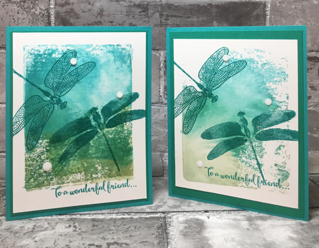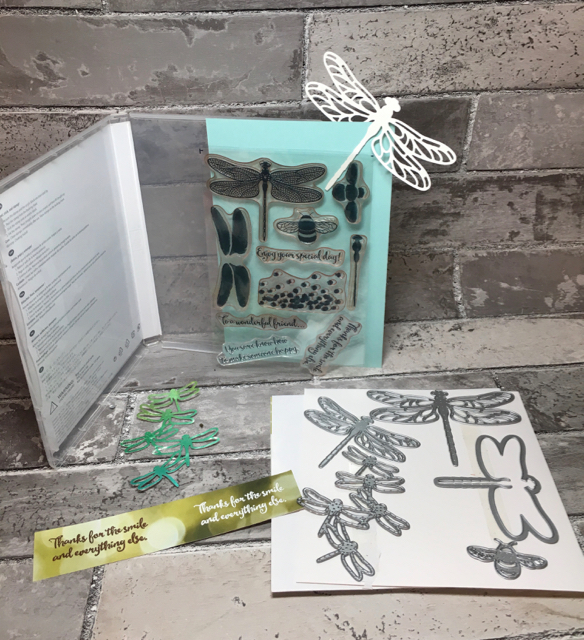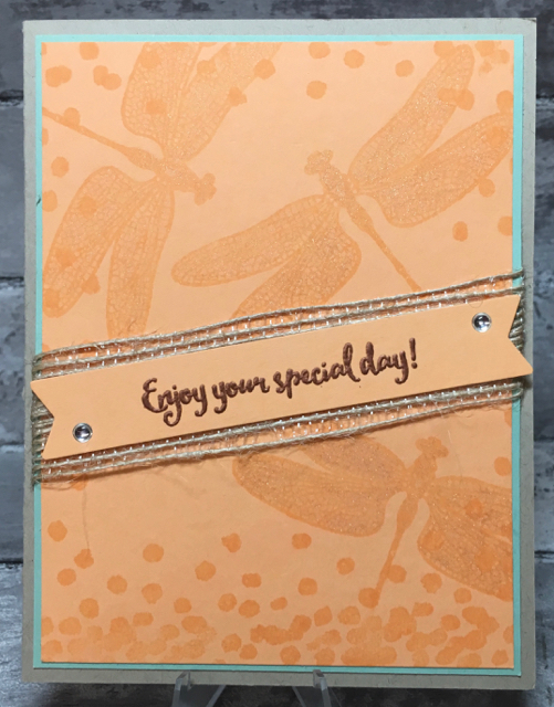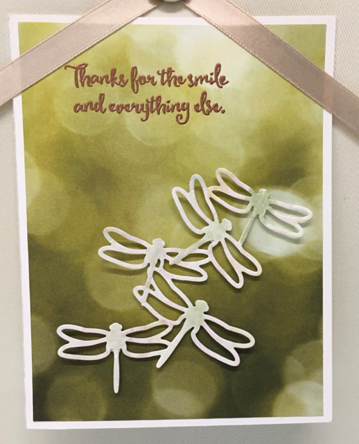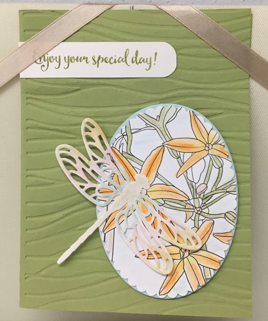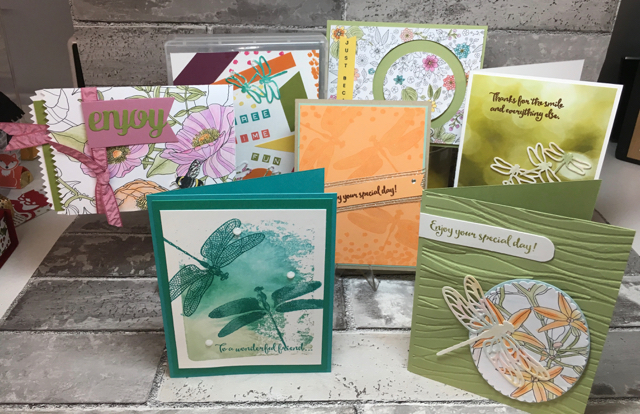 I’ve already shown you a few of the projects I made using the Lift Me Up stamp set and Up & Away Thinlits Dies. The other stamp set that I got to demonstrate at the Phoenix On Stage event in November was the Dragonfly Dreams stamp set and coordinating Detailed Dragonfly Thinlits. I just love them.