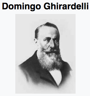 DomenicoDomingoGhirardelli, Sr. (February 21, 1817 – January 17, 1894) was the founder of the Ghirardelli Chocolate Company in San Francisco, California.  He was born in Rapallo, Italy and his occupation was as a chocolatier.  Imagine that.