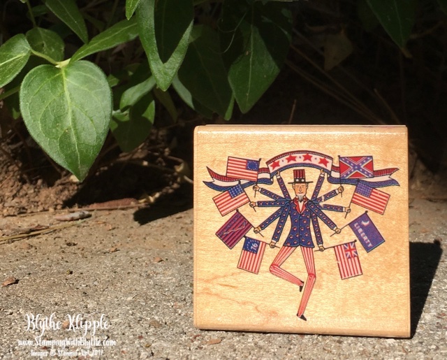 As I was going through the overabundance of rubber stamps that I’ve had in boxes pretty much since I became a Stampin’ Up! demonstrator in 1996 I came upon this charming Charles Wysocki Uncle Sam. I’ve been trying to cull stamps to sell in my Cyber Stamp Sale but this guy was rescued again. He’s the perfect gentleman to represent my American Pride. And he’ll remain in my small and special collection of ‘other company’s stamps’.