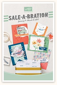 For every $50 spent in any current (as of the 4th) Stampin’ Up! publication, you can choose a FREE item from the Sale-a-Bration brochure.  The selections include stamps, designers series papers and accessories.