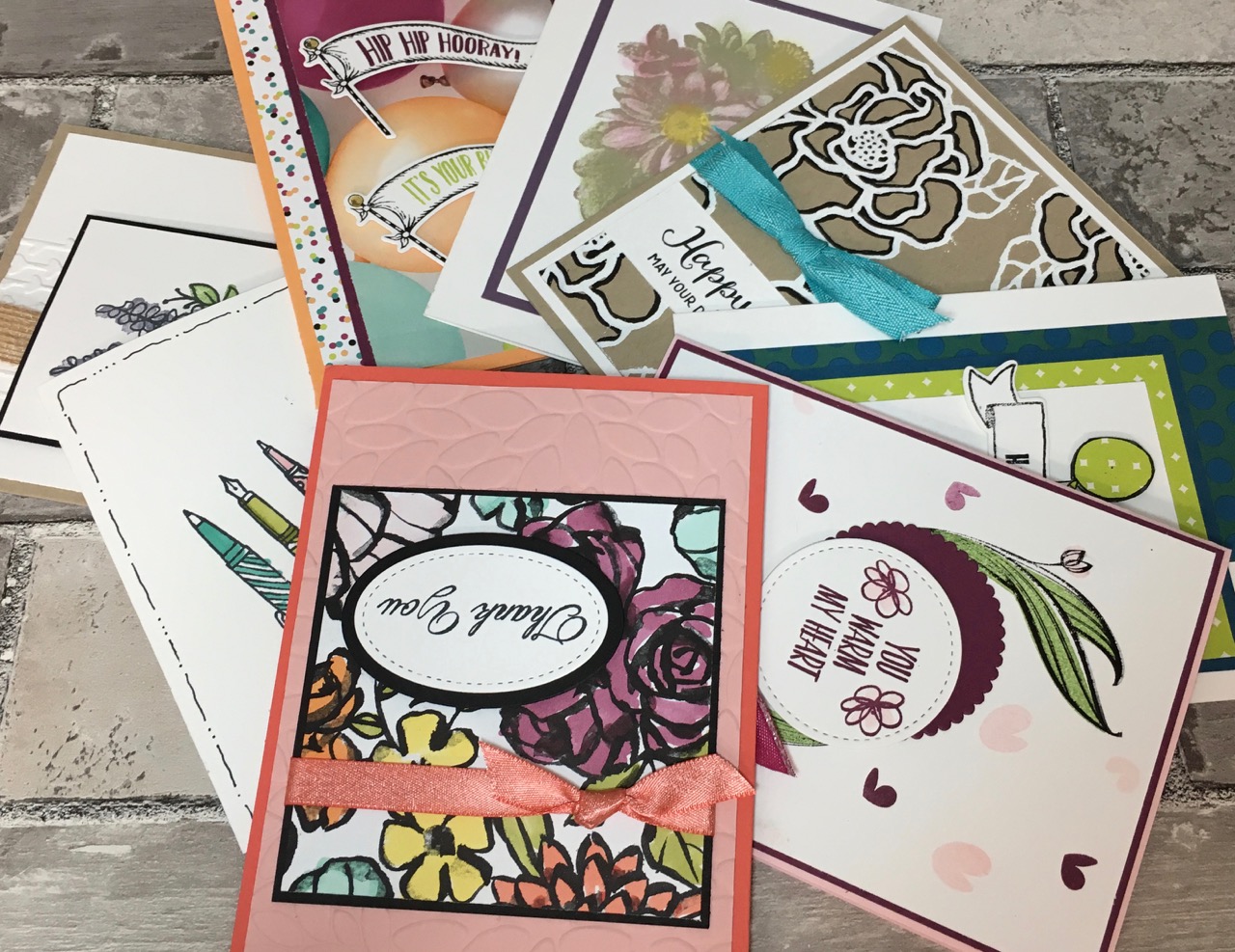 I’m so excited to say that I really kicked booty in my stampin’ studio this weekend, not only getting my work space tidied up (woohoo!) but also ensuring that January’s Buffet Cards are ready for viewing! Â Due to cedar pollen and lack of rain or snow, I tried to stay indoors just as much as possible. Â That pollen is my annual Christmas gift from Mother Nature and it’s two months of itchy eye misery.