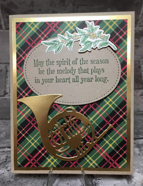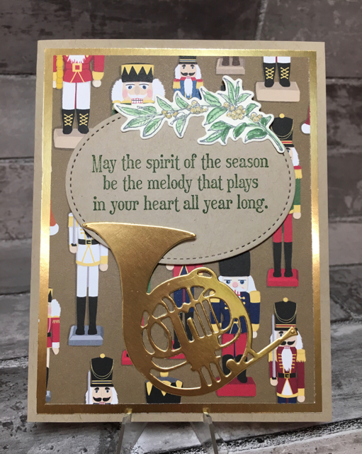 Usually when I make one card that I’m happy with I’ll go ahead and make a second one.  Here’s the card I made a few days ago with the Musical Season stamp set from the just released 2017 Holiday Catalog.   If you’d like a hard copy of the new holiday catalog and don’t have a demonstrator to call your own, please send me an email, blythe@stampingwithblythe.com, and I’ll send one out to you a.s.a.p.   Here’s the card I made to include in a gift basket I donated to our Fire Station for a fundraiser this weekend.