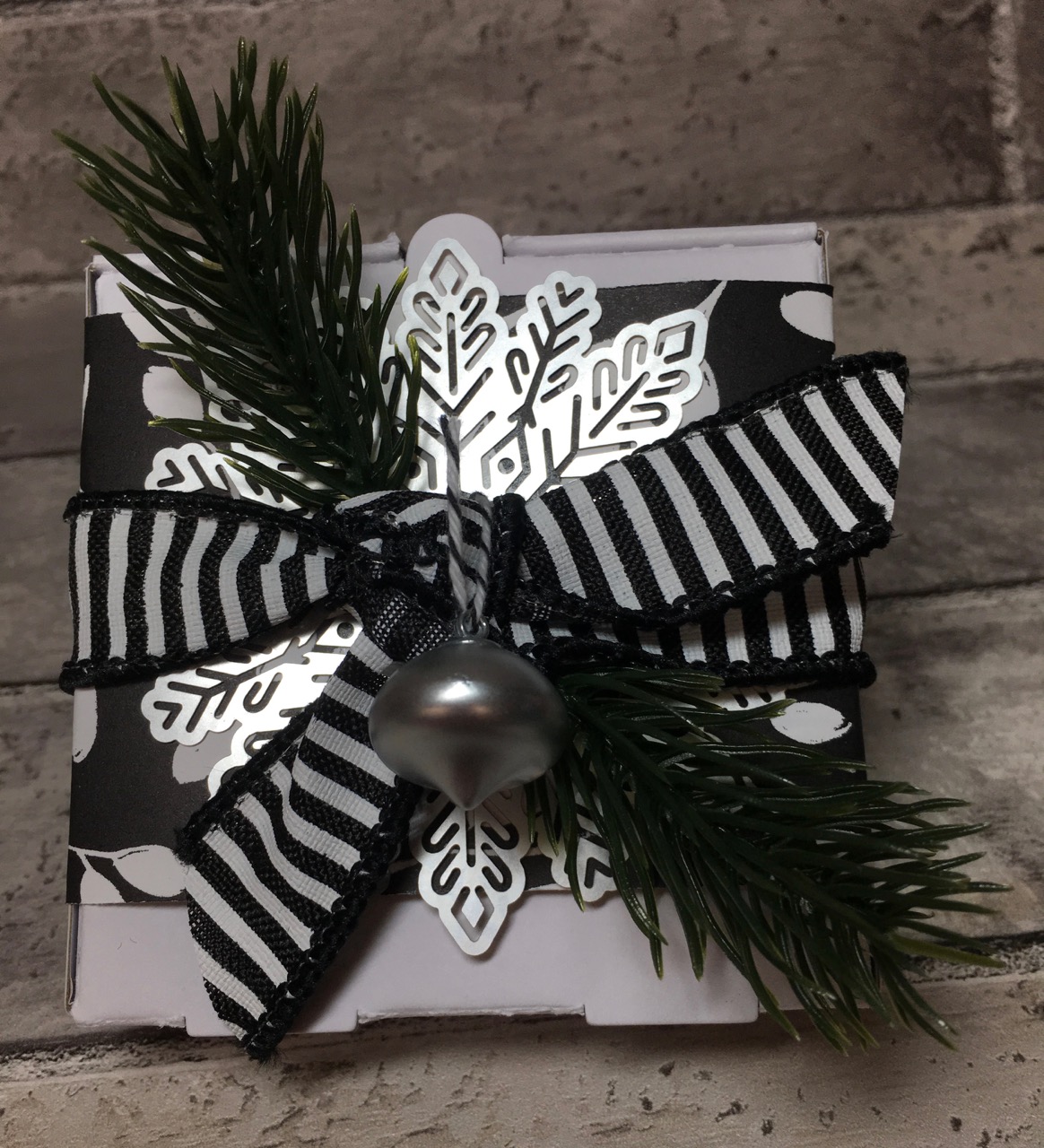 Simply wrap a 2-3/4″ x 10″ strip of the Designer Series Paper of your choice, securing the overlapping ends with a strip of Fast Fuse Adhesive. Add a gold or silver snowflake (or other layer of your choice), tie it up with some ribbon, add a little adornment or two and you are good to go. Make someone’s day!