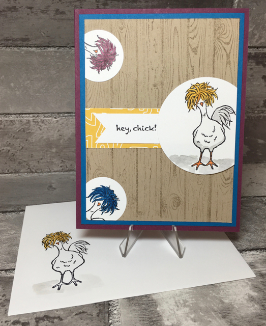 So, here’s my card that just makes me smile because it’s so unexpectedly sassy. It actually reminds me of Miss Piggy of the Muppets when she tosses her curls around.
