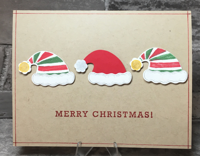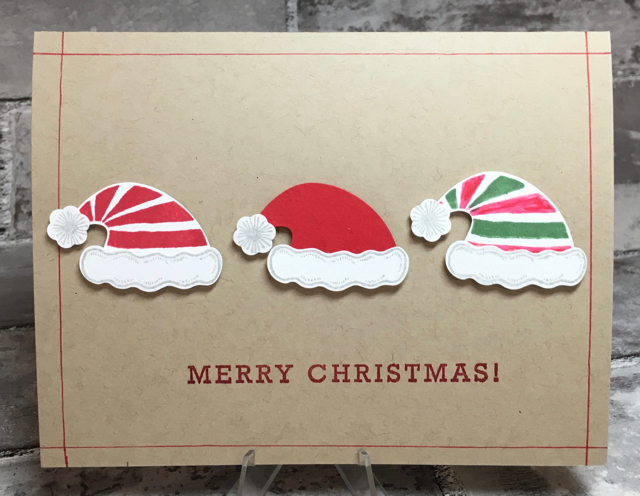 The second modified card is this simple-ish one using three Santa/Elf hats. Here’s my version: