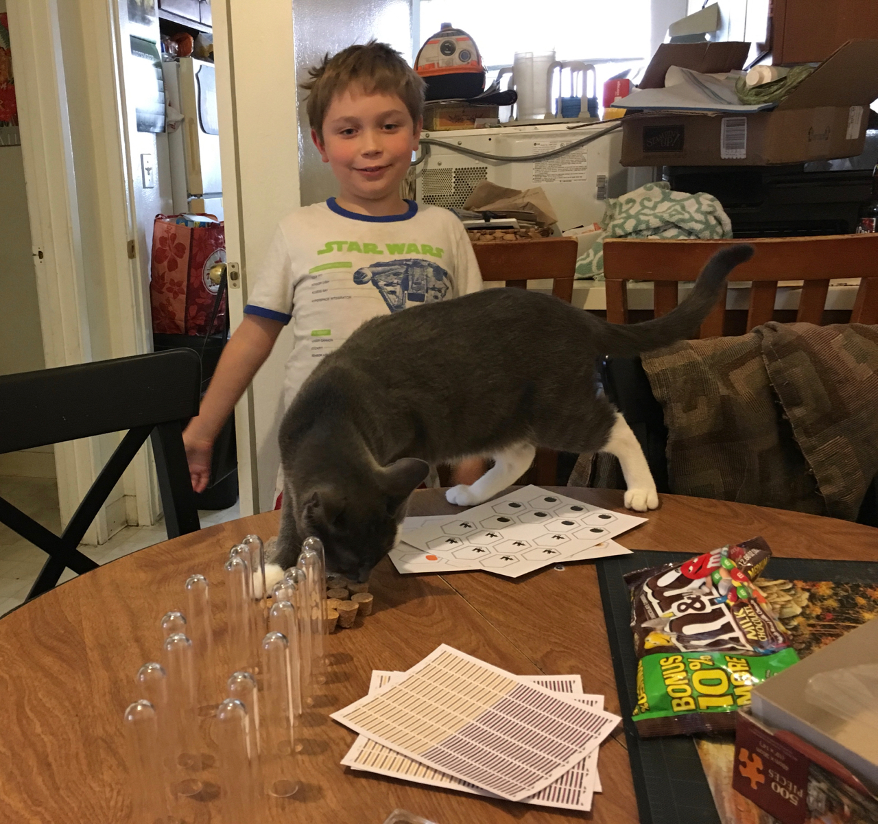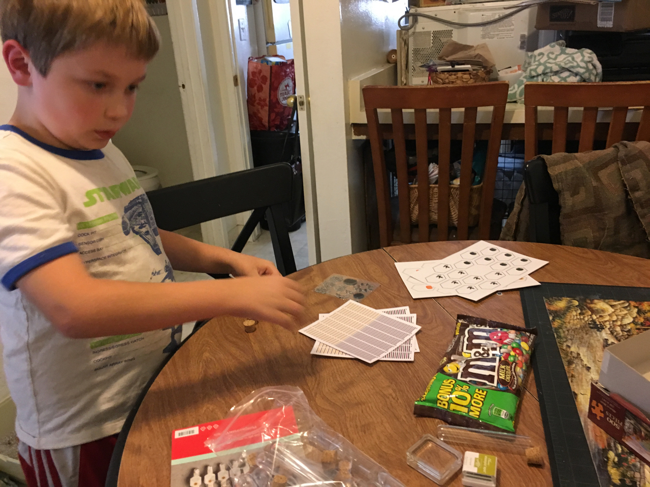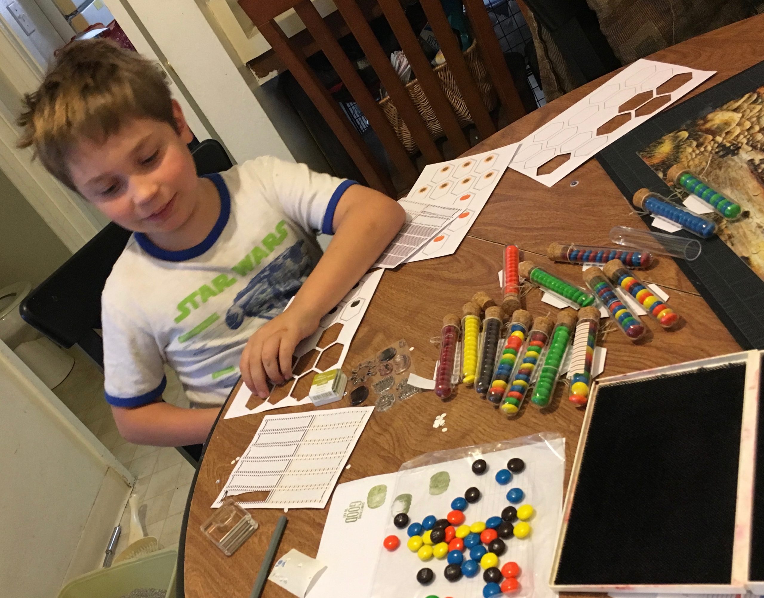 We assembled last year’s September Paper Pumpkin which was plastic test tubes and decorations/tags. I just never got to it and now I know why……. It was waiting for Zion and Oma to have some quality Paper Pumpkin fun time together. This kit was right up his alley.