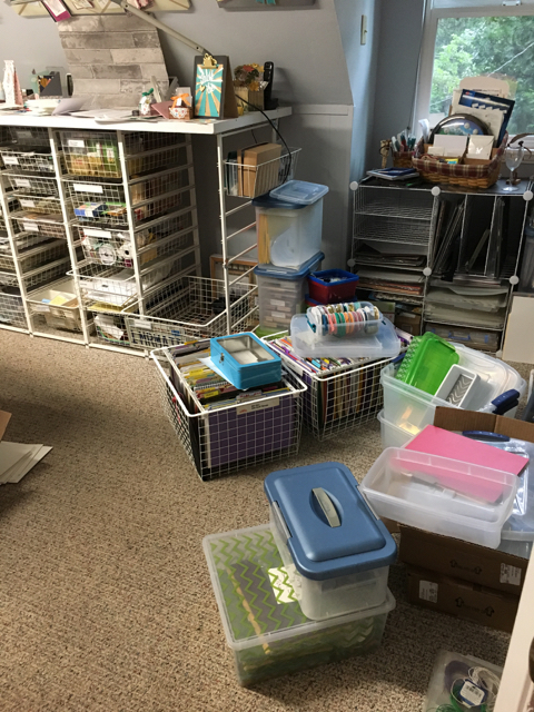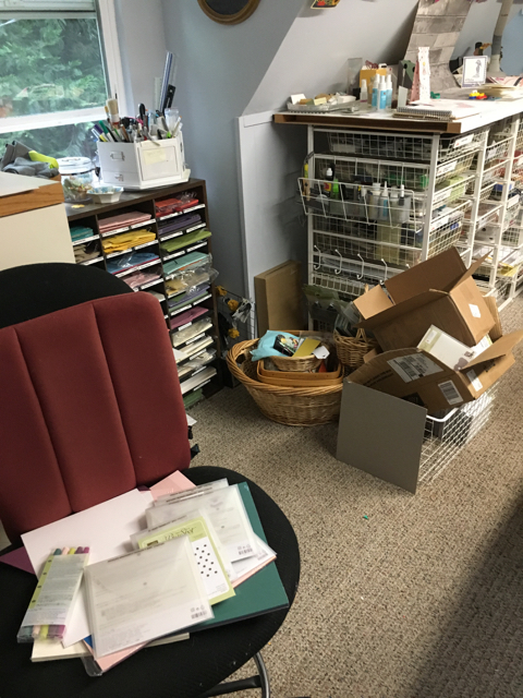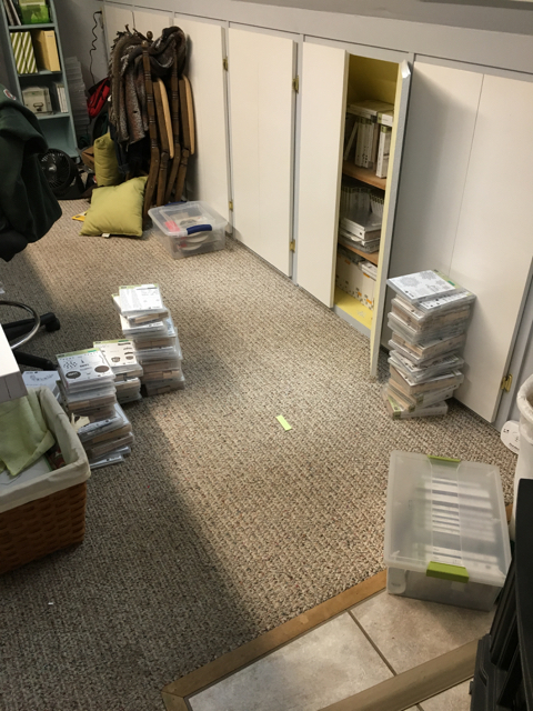 As you walk into my stamping studio which is over the garage……and look right……..WHAM……proceed at your own risk!