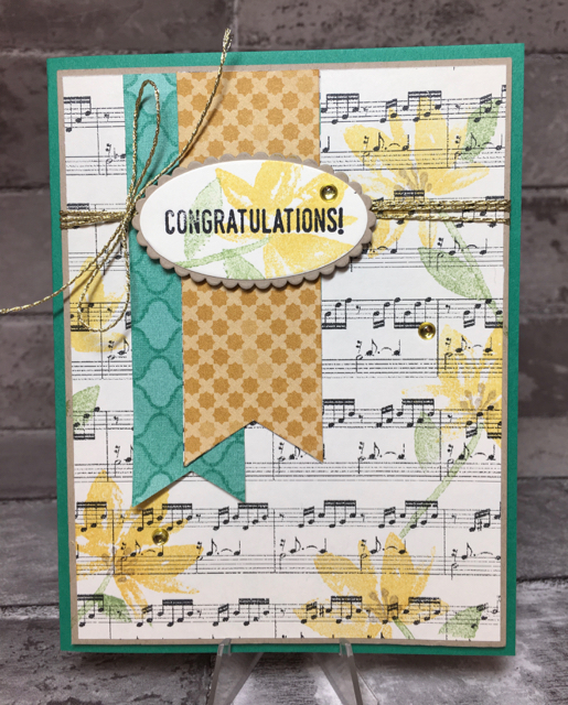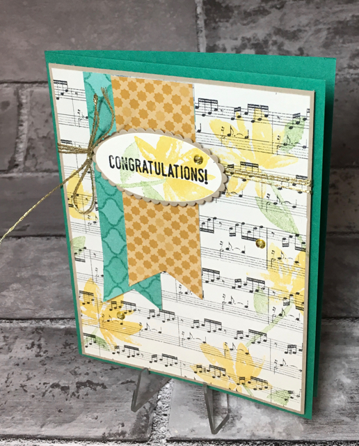 I selected the card front base based on the colors used in the Moroccan Designer Series Paper.  And I chose that particular paper based on the music pattern that I found in the retired This Christmas Specialty Designer Series Paper.  I saved the remnants of that pack just for the music pattern.