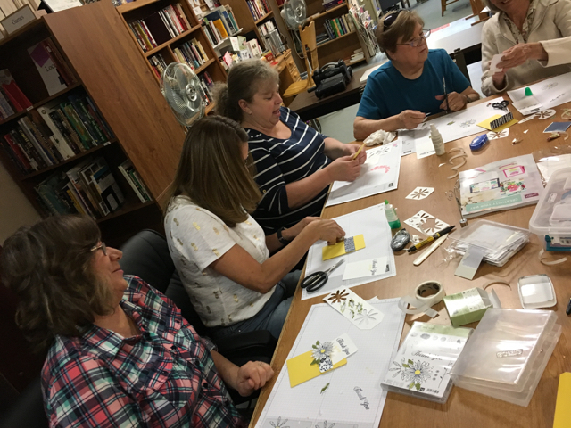 Despite having 13 participants yesterday it was a calm and efficient and FUN time together. I thank everyone for attending and hanging in with the rotation of the supplies. Stamping for Adults at our Mi Wuk Library is great therapy and inspires a strong sense of accomplishment.