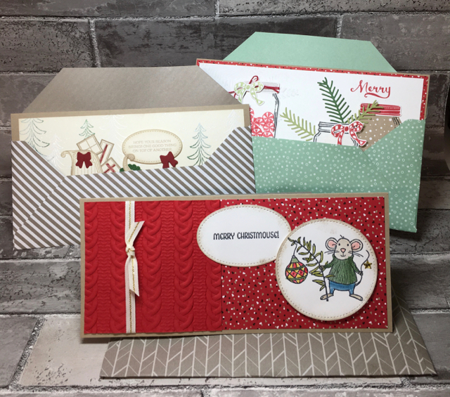 After quite a few attempts — with scratch paper — I managed to make envelopes that would fit the three cards I just completed for my neighbor.