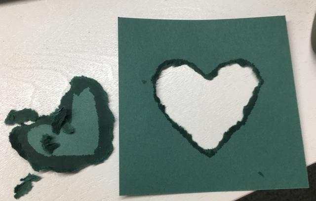 Then gently tear away the center of the heart:
