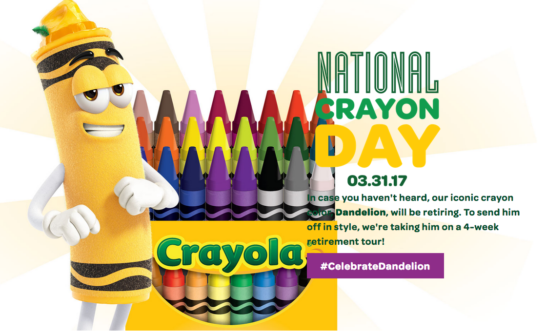 Sale-a-Bration 2017 is ‘retiring’ today and Crayola has announced the retirement of its Dandelion color, a staple in the infamous Box of 24 colors.