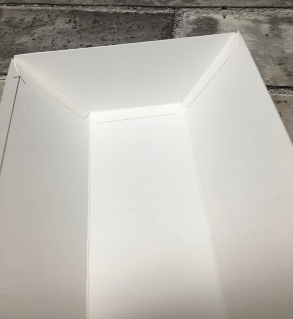 Carefully fold on the score lines of the three sides of what is now becoming the end flap for the ribbon holder. Apply either Tear & Tape or Multipurpose Liquid Glue to the ‘outside’ of these flaps and then position them inside each end of the folded ribbon holder base piece. TIP: Once you get the end pieces in place, burnish the flaps using a Bone Folder. Burnish = rubbing them firmly to push the glue into the fibers of the card stock. See photo below: