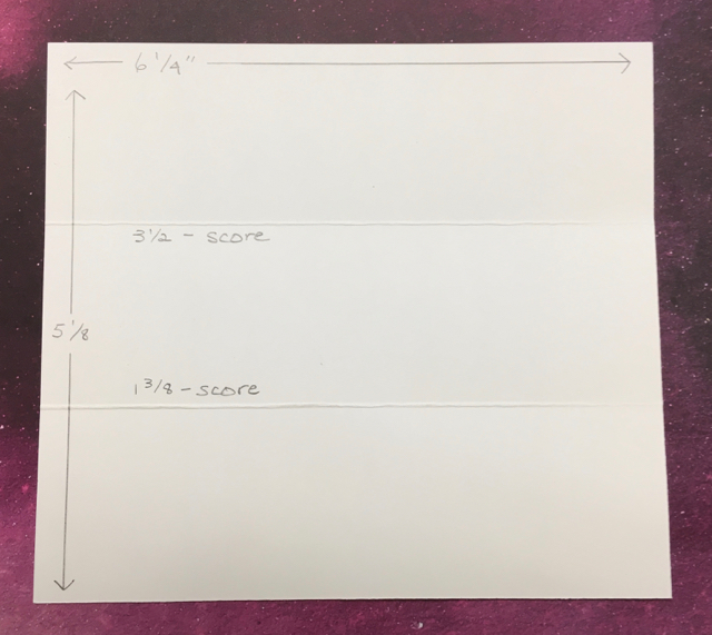You’ll need a 6-1/4″ x 5-1/8″ piece of Whisper White Thick card stock (or any color card stock you might want to use) for starters. Plus scraps large enough to accommodate the die cut end pieces, about 4″ square each.