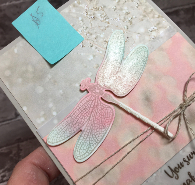 And now that the glimmer is flowing I can add some glitz to the dragonfly’s wings on card #5 for today’s buffet.